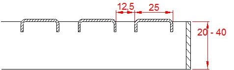 An Stelle der üblichen Füllstäbe wird ein Standard- U-Profil für Höhe 25 mm eingepresst.